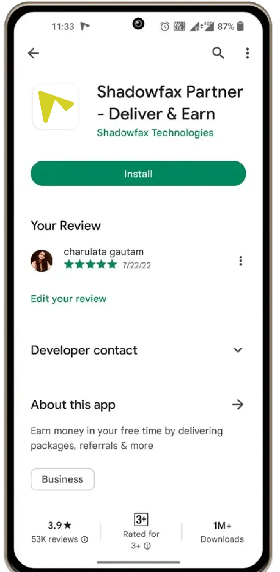 Install the Shadowfax partner App.Upload your PAN & AADHAR to get registered.