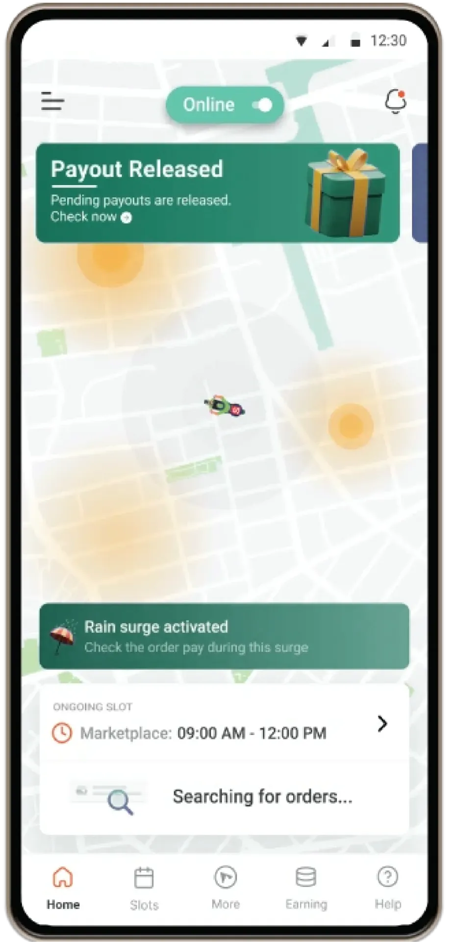 Choose your delivery slot, go online, receive your first order & get paid for every delivery.